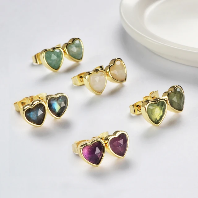 Women Wholesale Bulk Gold Plated 925 Sterling Silver Moonstone Amethyst Crystal Gemstone Heart Shape Earings
