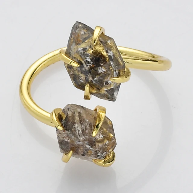 18K Gold Plated Adjustable Herkimer Diamond Natural Crystals Rings