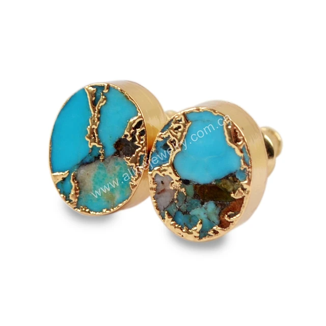 Wholesale Fashion Women 18K Gold Plated Oval Turquoise Stud Earring Trending Earings 2026